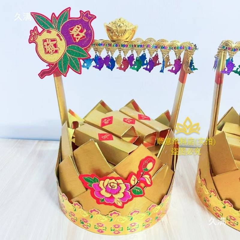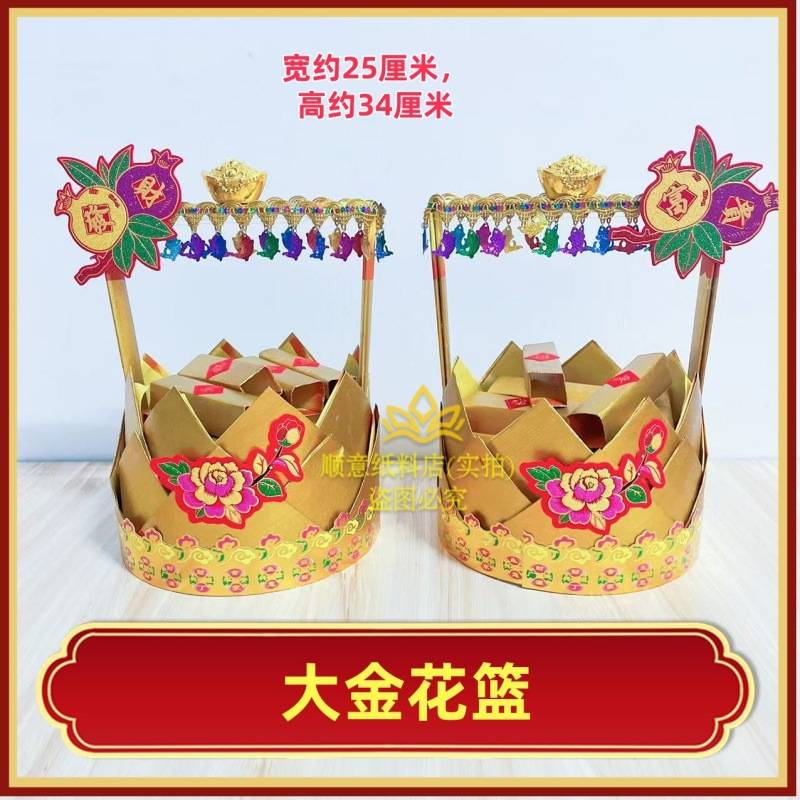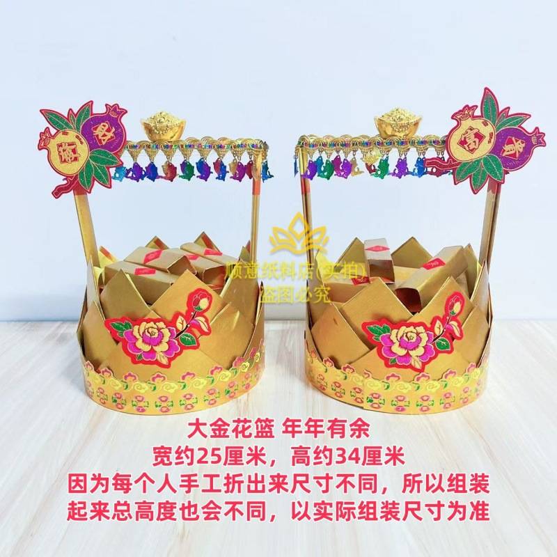 新款潮汕中秋折塔大金花篮年年有余小金篮花篮一对材料包有教程