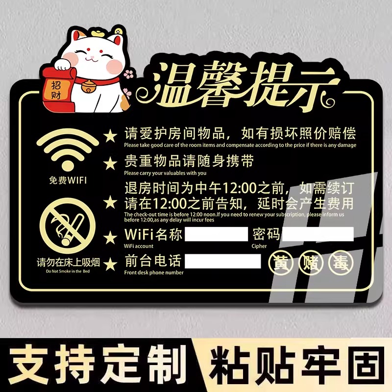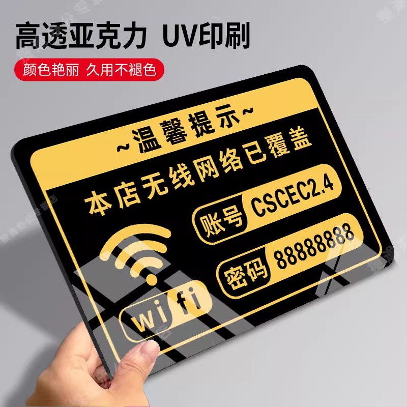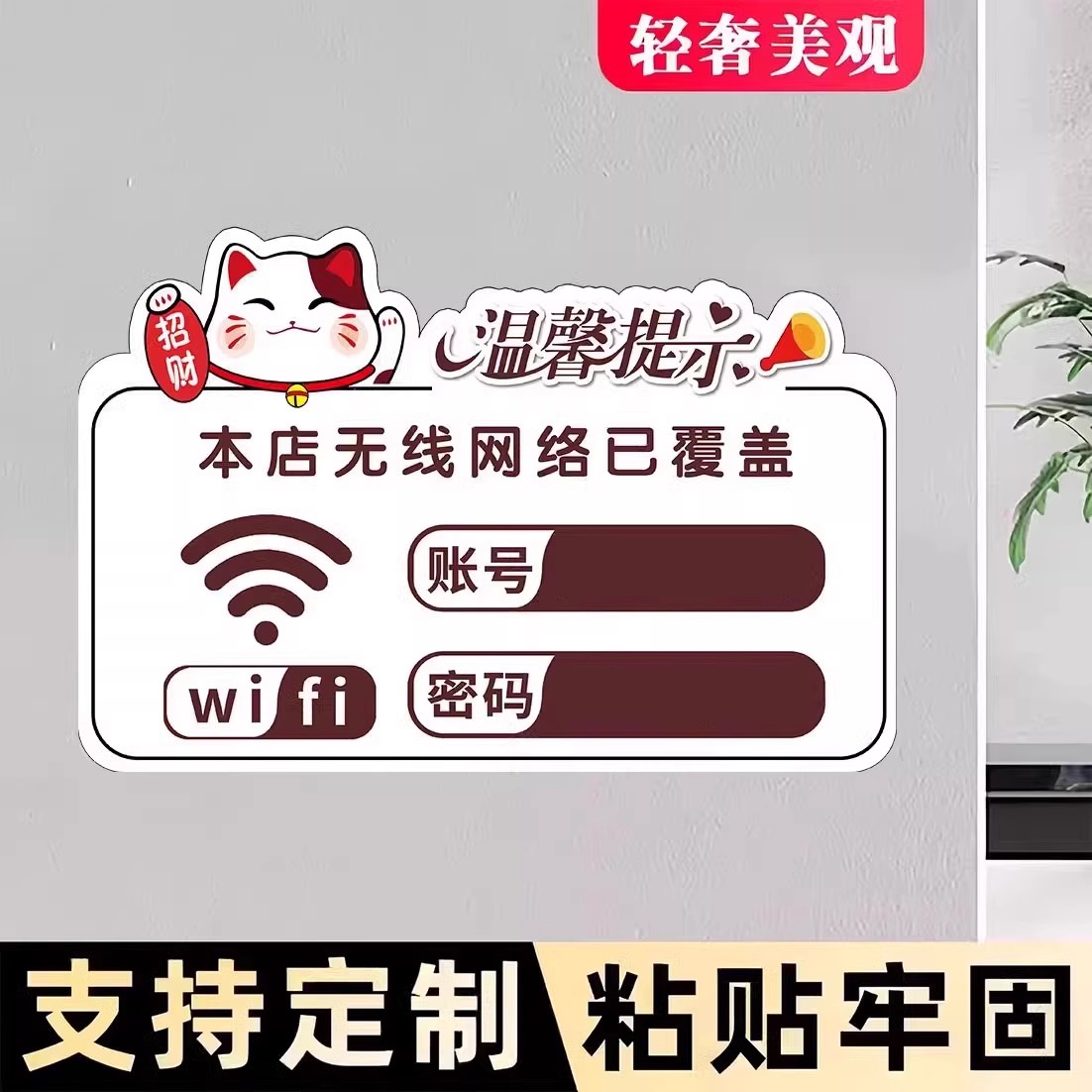 WIFI无线网提示牌定制账号密码提示牌墙贴waifai密码牌酒店宾馆餐厅饭店店铺免费上网告示牌歪密码牌标识牌子
