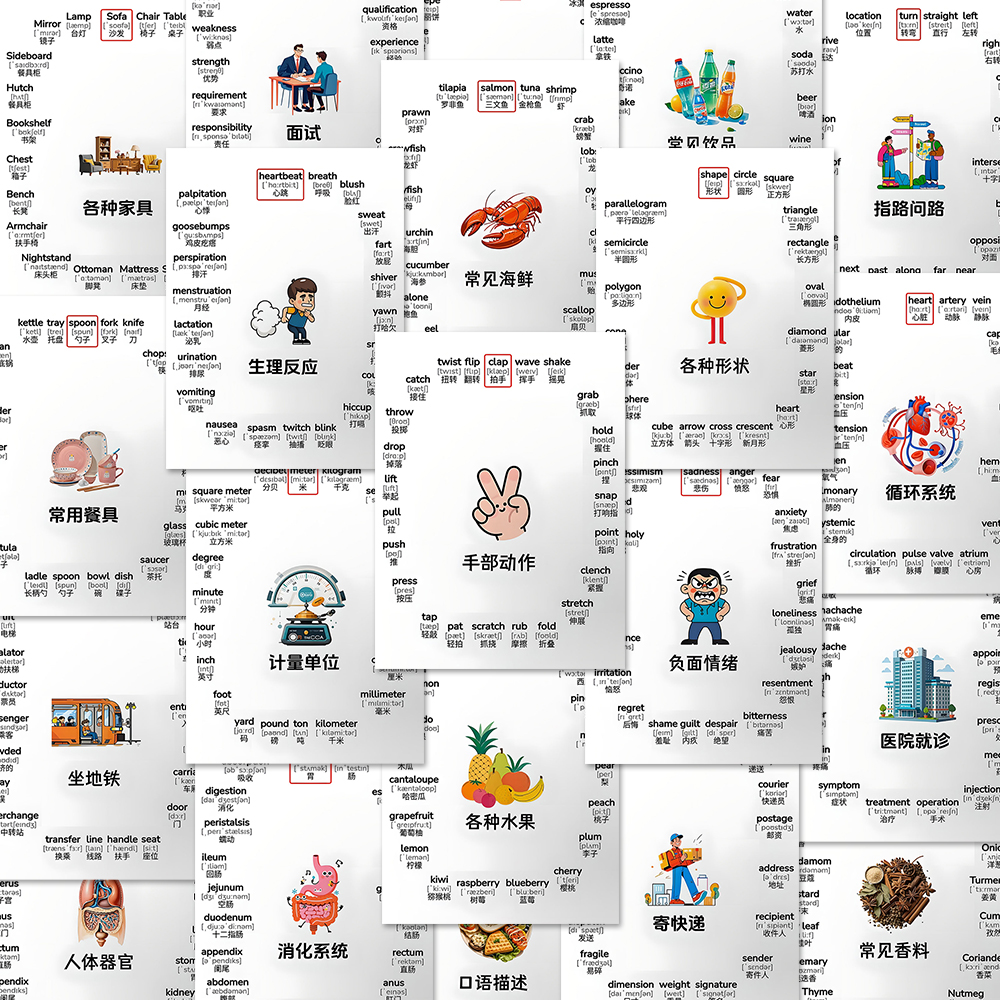 96张联想3500词趣味记忆法免裁英语高频单词学霸diy学习AB款装饰