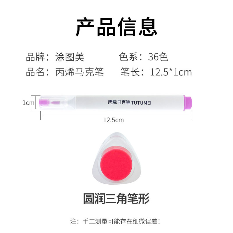 直液式丙烯马克笔48色儿童美术专用小学生用马克笔diy可叠色软头丙烯笔可水洗安全水彩笔咕卡笔24色36画画笔