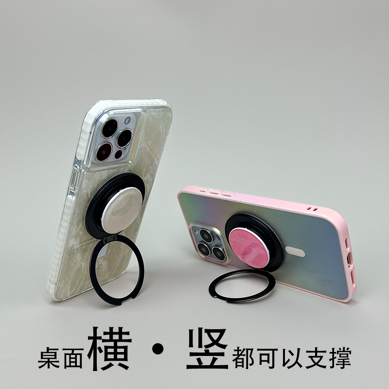 天然贝壳滴胶新款气囊支点二合一磁吸手机支架折叠支点一体指环扣