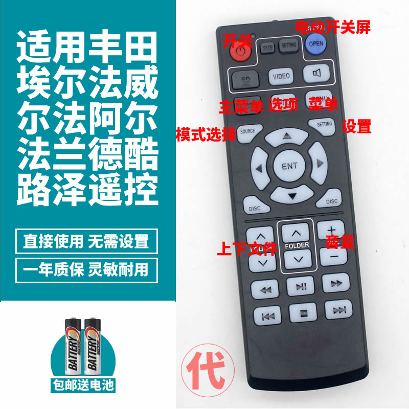 喜木适用丰田埃尔法威尔法阿尔法兰德酷路泽陆地巡航舰塞纳普瑞维亚2012-2021款后排DVD吸顶车载电视遥控器
