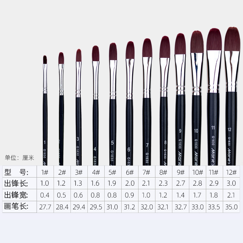 马利G1630酒红色鸭舌形画笔单支油画笔美术绘画初学者用笔丙烯尼龙水粉笔套装油画笔单只