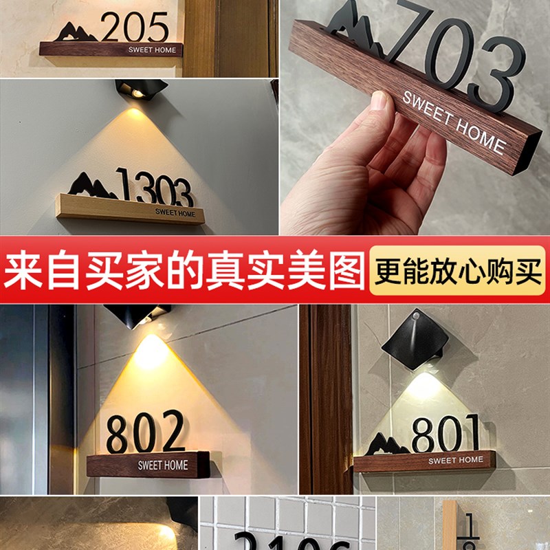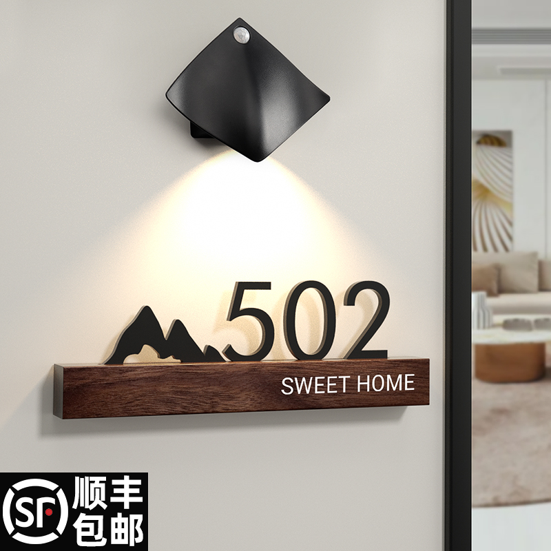 门牌号码牌家用创意带灯入户装饰门牌个性门口发光数字号码牌子酒