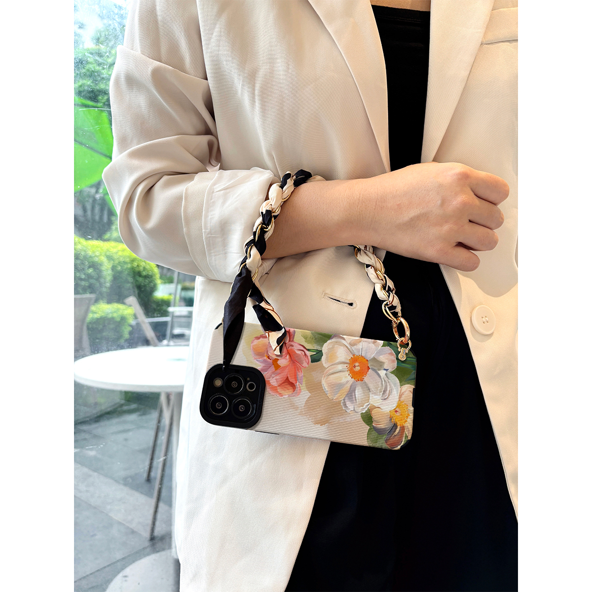 丝巾油画芍药oppoa97斜挎手机壳适用oppoa1活9力8版7硅6胶5软4壳3全2包1防0摔g新x款pro女m时s尚plus小羊皮