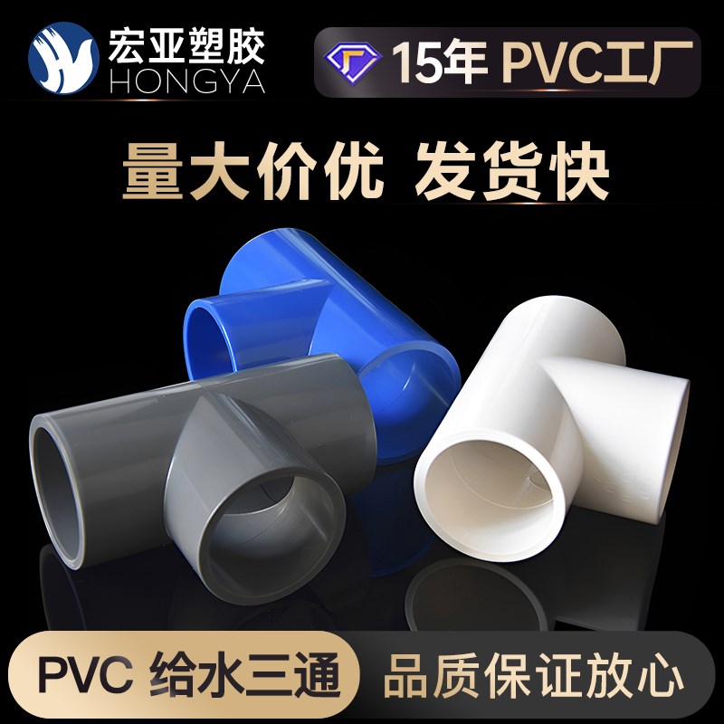 PVC给水管三通 等径正三通配件接头水管配件鱼缸上下水90 110 160