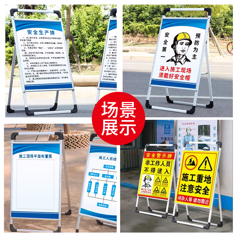 建筑工地安全标识牌正在施工折叠手提展架必须戴安全帽定制注意安全警示牌当心深坑危险标示牌贴当心告知牌
