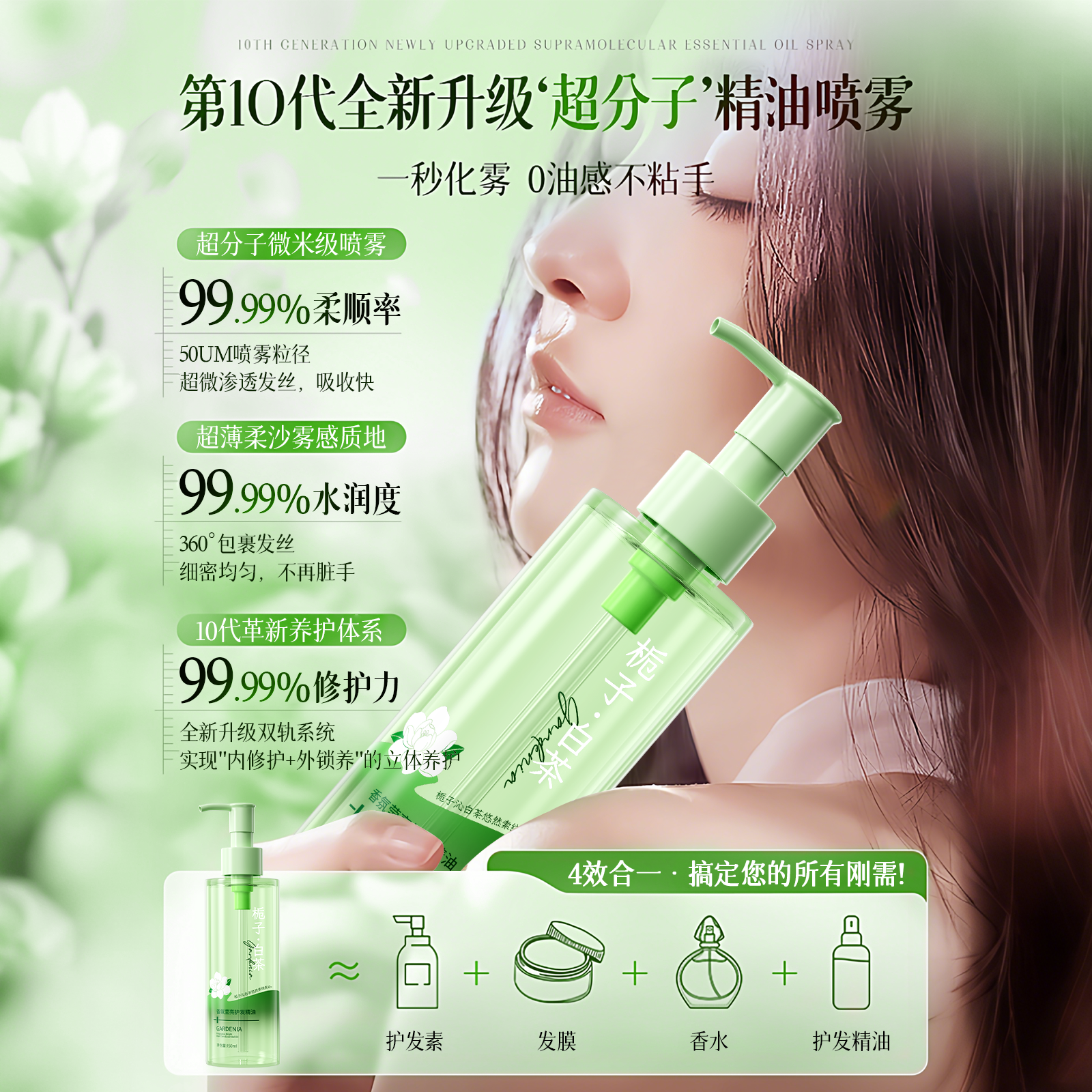 霸王山茶花护发精油喷雾香氛草本养发修护毛躁补水柔顺持久留香