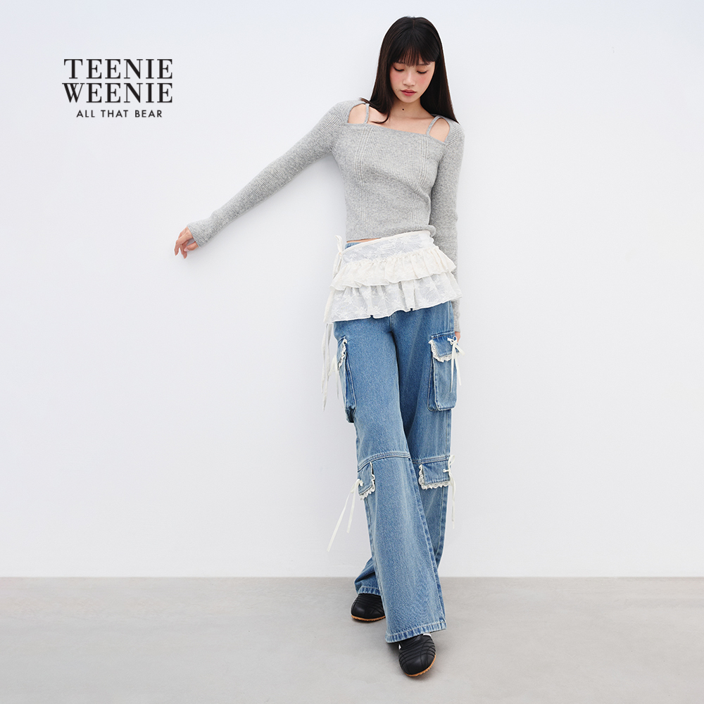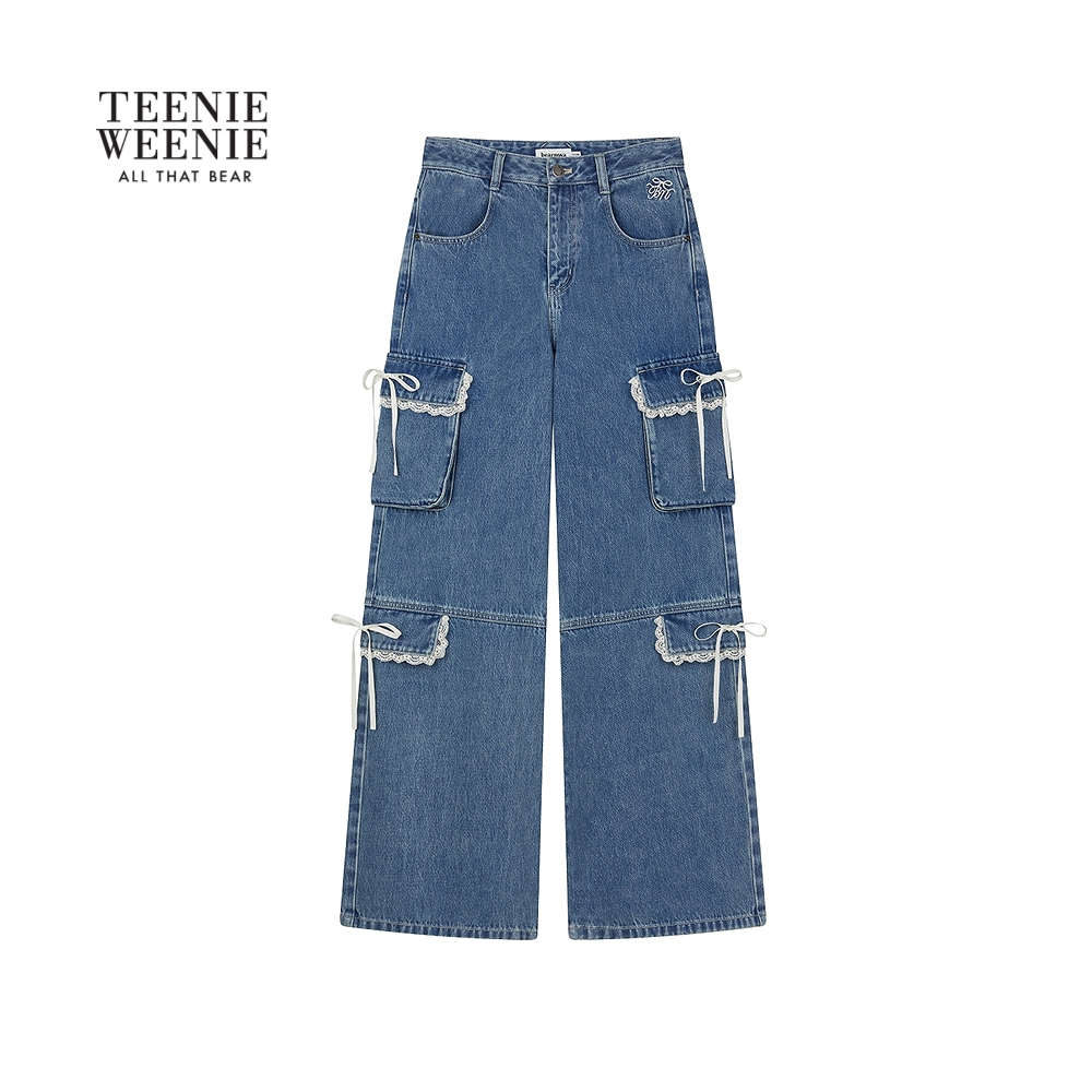 TEENIEWEENIE bearnova2025秋季新款女装蕾丝花边拼接工装牛仔裤