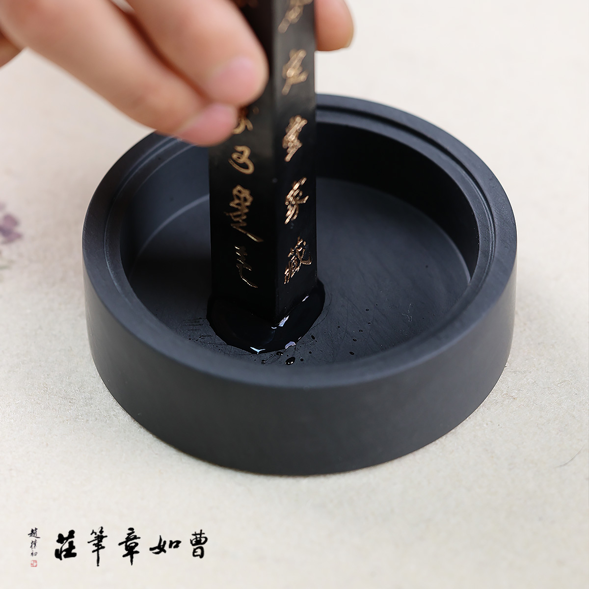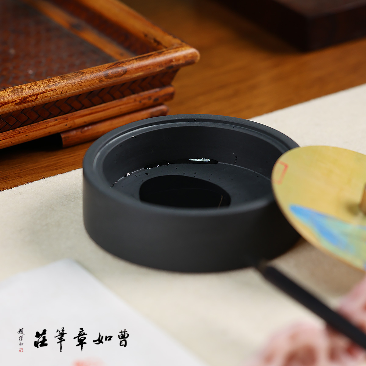 千里香山黄铜盖天然原石罗纹砚台研墨磨墨条砚台仿盛墨蒸发歙砚