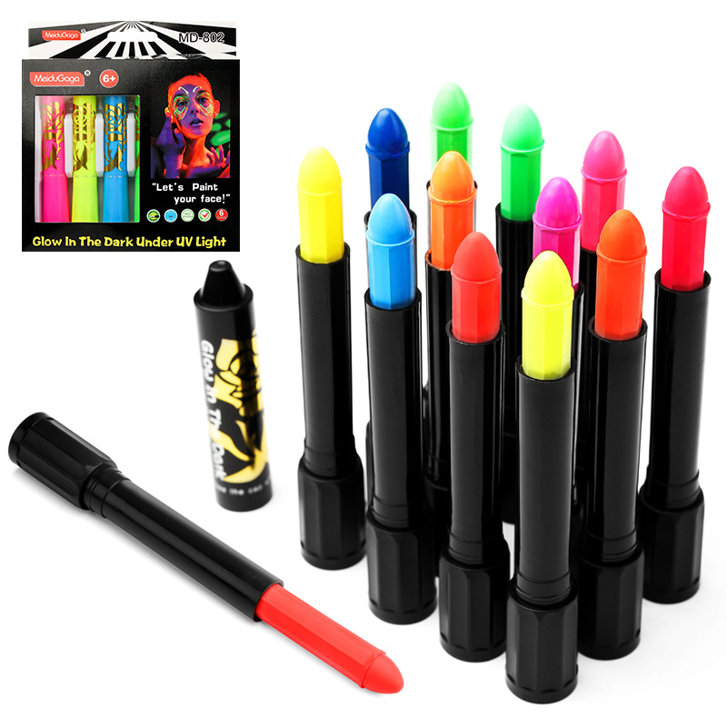 亚马逊人体彩绘笔6色12色套装万圣节舞台戏剧彩绘夜光油彩棒蜡笔
