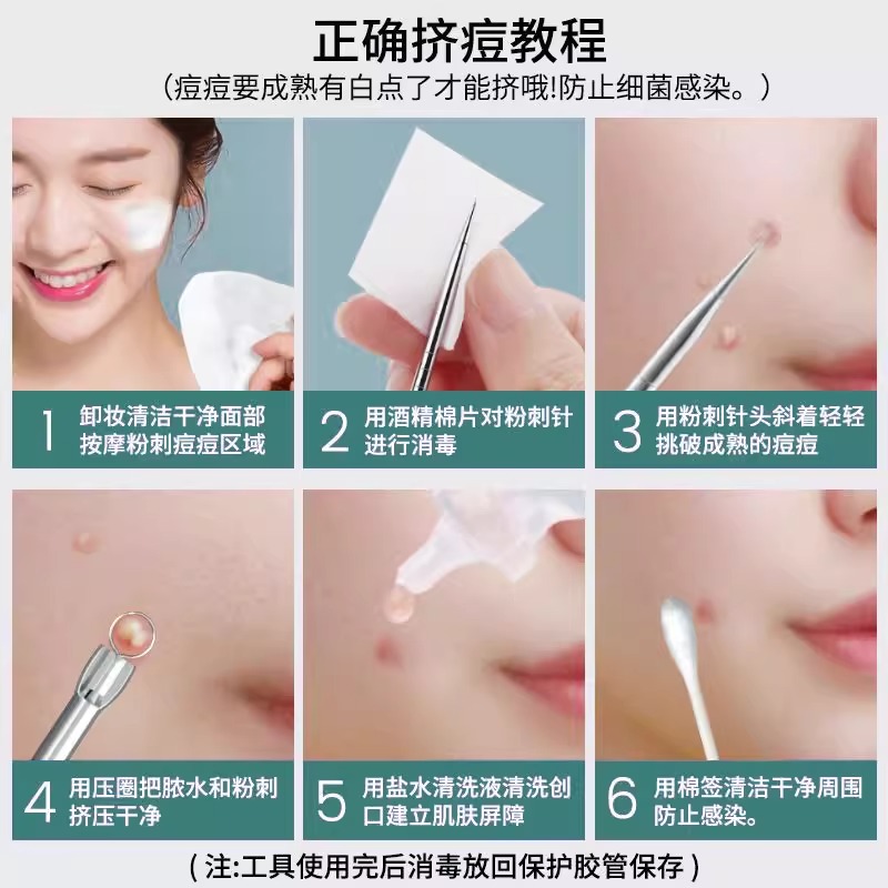超尖细粉刺针粉刺夹细胞夹套装去黑头镊子祛痘痘暗疮针美容院工具