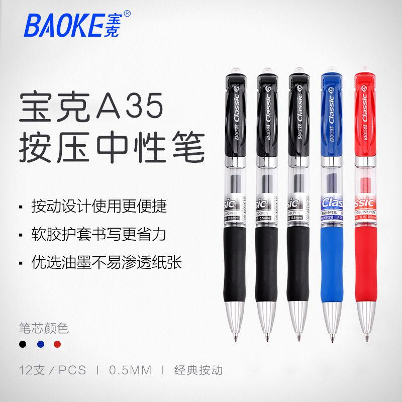 宝克按动中性笔A35签字笔0.5mm按动水笔笔芯蓝黑会议中性笔黑笔