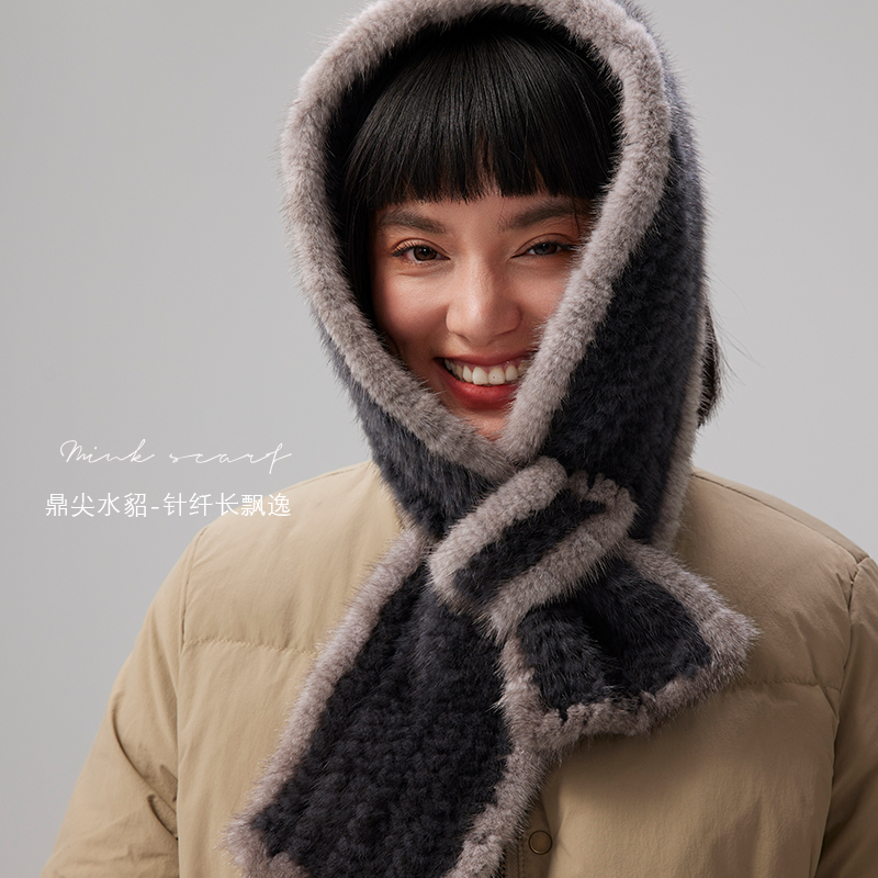 「可传承-水貂毛」 法式编织100%水貂皮草围巾围脖护颈女冬季保暖