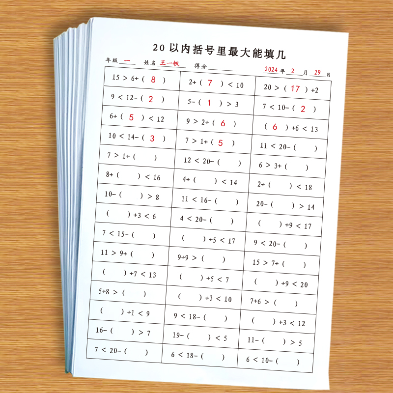20以内100以内最大填几最小填几专项练习纸幼儿小学大于号小于号加减法20、100以内填数专项练习纸