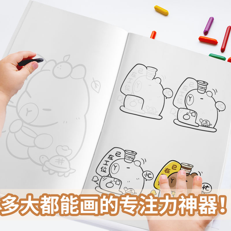 卡皮巴拉线稿描摹本画画本儿童素描临摹画册幼儿园涂色本可爱动物Q萌漫画入门手绘控笔训练简笔画描绘图画本