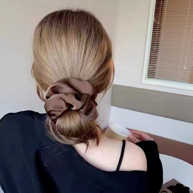 大肠发圈女高级感法式赫本风黑色头绳低丸子头低马尾发饰2025新款