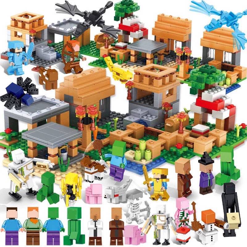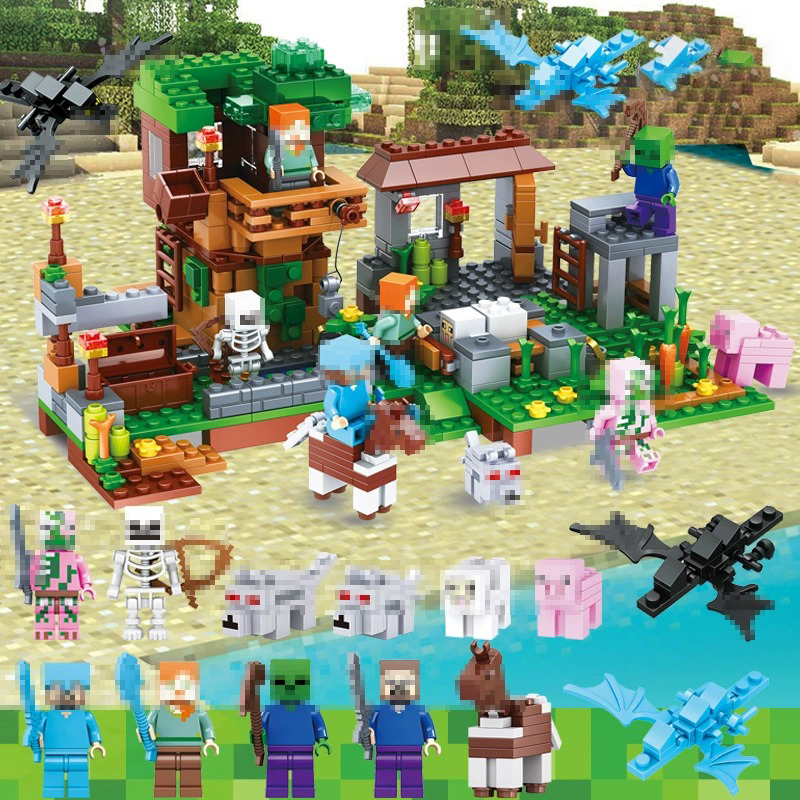 孩子积木拼装儿童玩具男我的世界益智力机关山洞生日礼物拼插农场