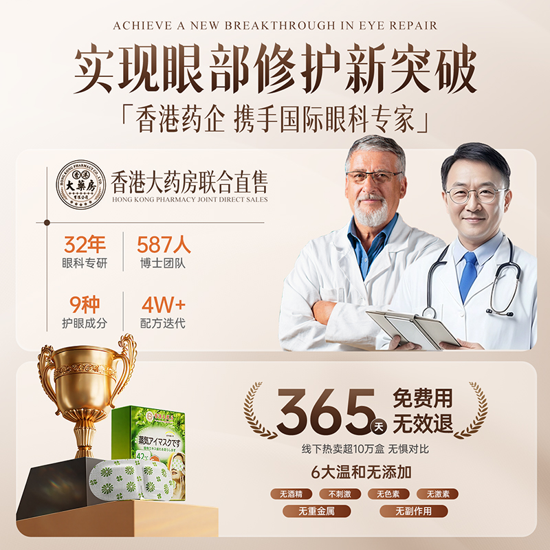 香港大药房眼罩蒸汽缓解眼疲劳热敷睡觉遮光男女学生睡眠发热眼贴