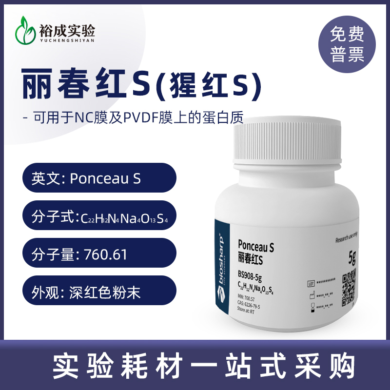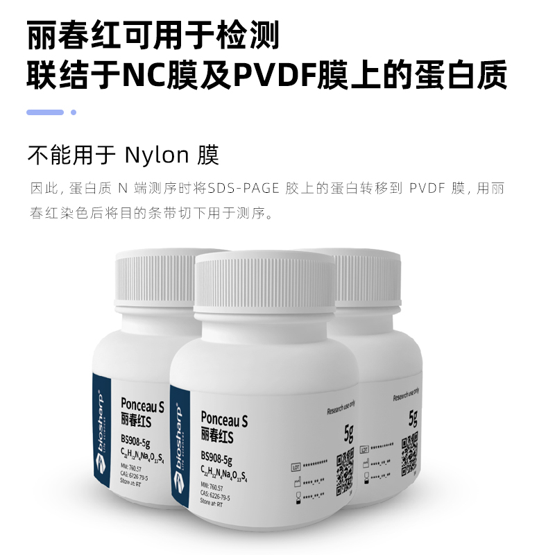 biosharp白鲨 BS908-5g 丽春红S(猩红S) Ponceau S PVDF NC膜蛋白检测用丽春红染色液