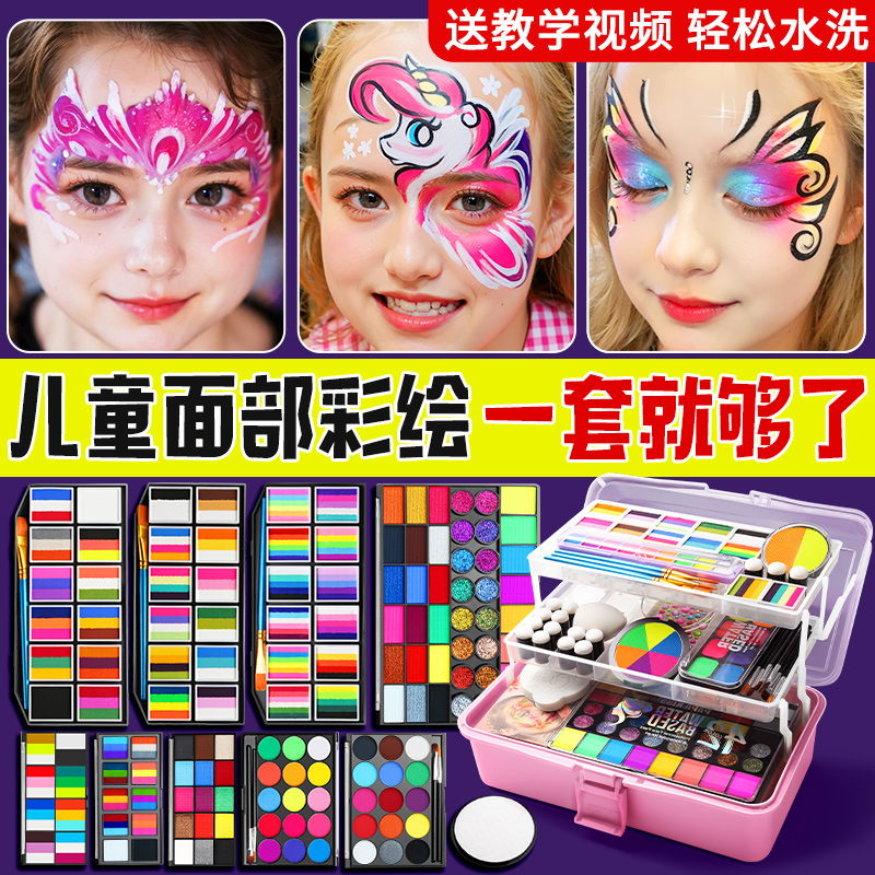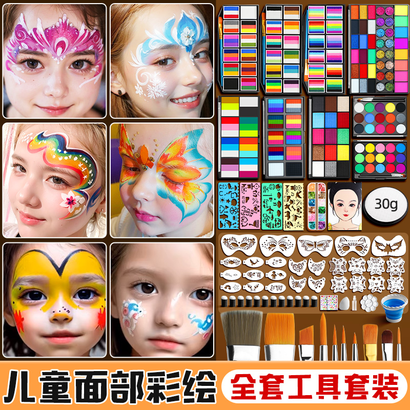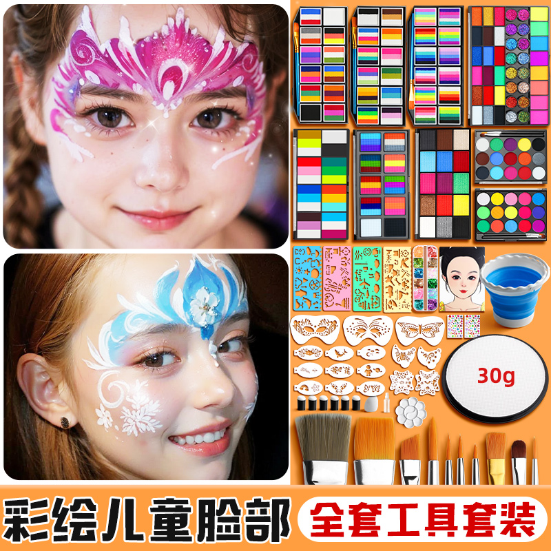 儿童脸部彩绘面部颜料工具套装无毒可水洗人体画脸材料水溶性化妆舞台妆彩绘膏人体人脸蝶妆脸彩宝宝幼儿园