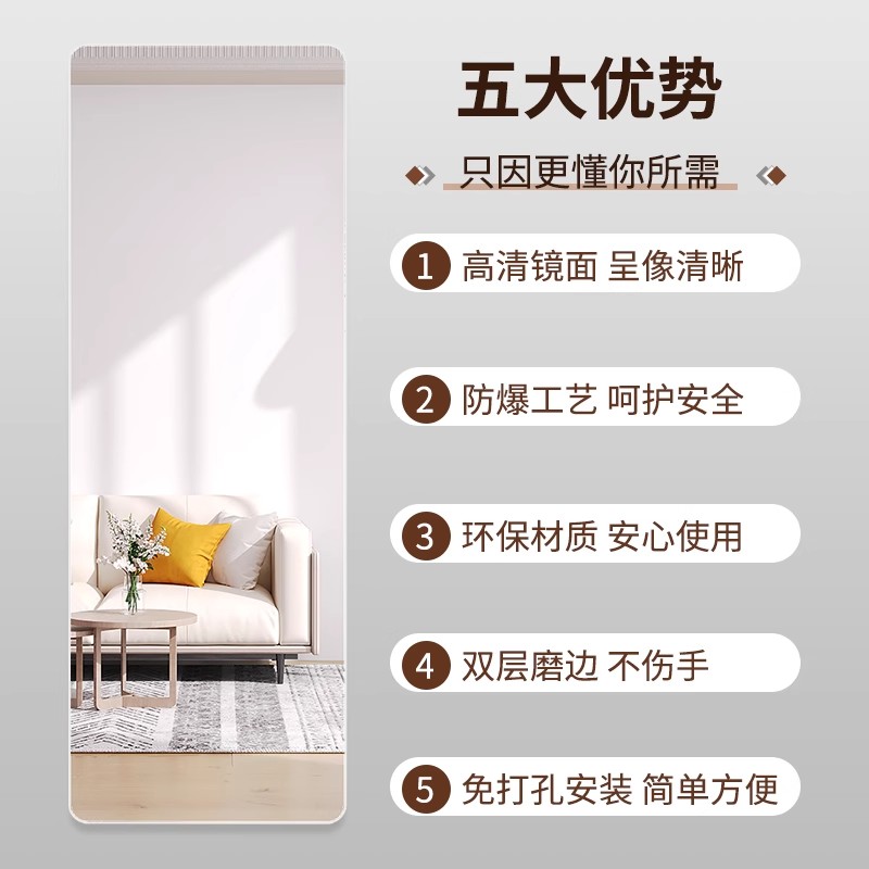 亚克力软镜子贴墙自粘全身穿衣镜家用宿舍高清镜面贴纸墙面粘贴镜