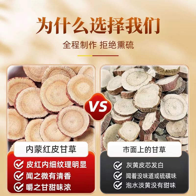 内蒙红皮甘草片中药材正品官方旗舰店干草生甘草甘草干姜汤白芍