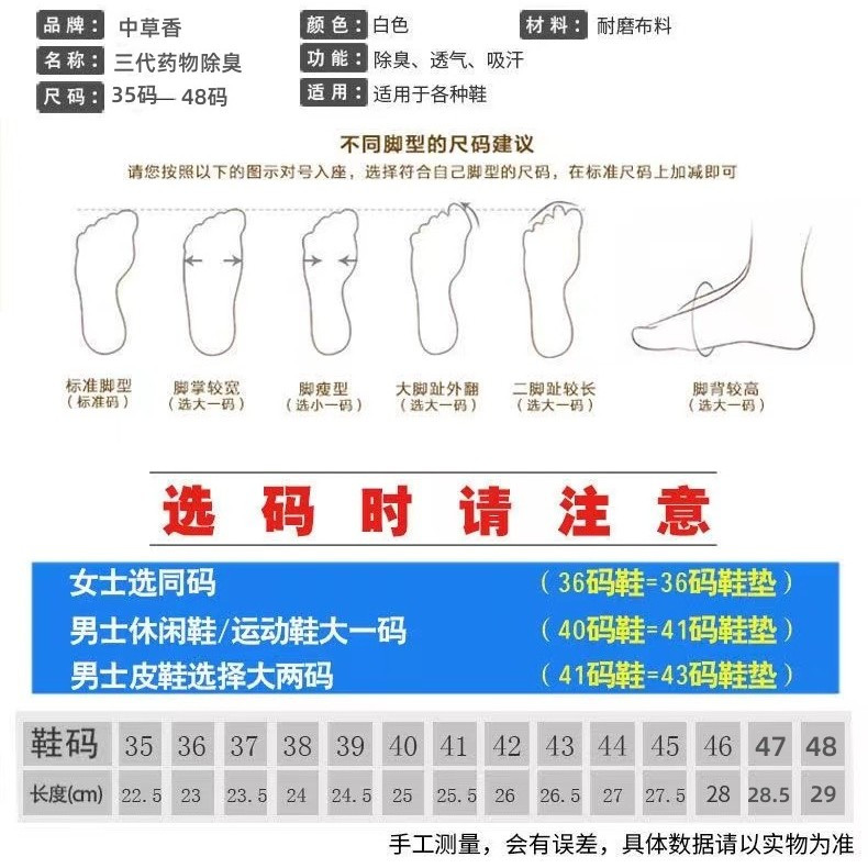 药物除臭鞋垫中药吸汗透气防臭男女纯棉布鞋垫运动鞋中草皮鞋一码