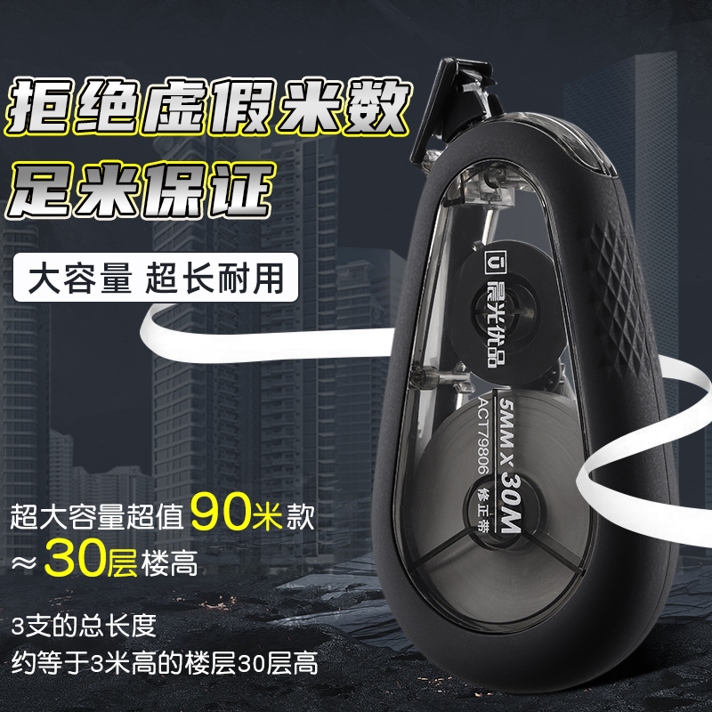 晨光黑白耐摔修正带初中生专用小学生涂改带实惠装酷黑系列改正带大容量休正带修真改错带静音修正贴黑科技
