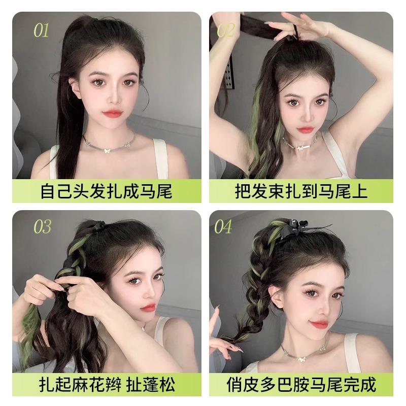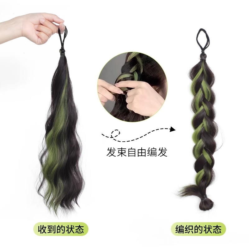 假发辫子挑染马尾多巴胺麻花辫彩色发束增发量假发圈辣妹编发神器