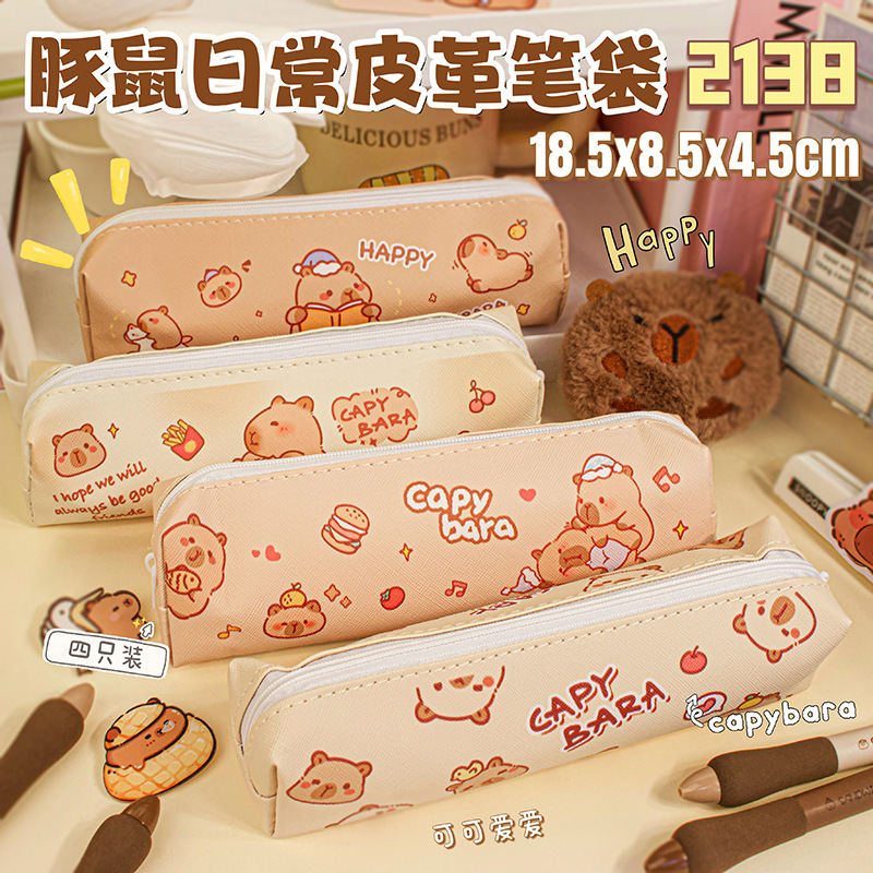 卡皮巴拉创意笔袋皮革质感高颜值学生幼儿园笔盒儿童礼品萌趣拉满