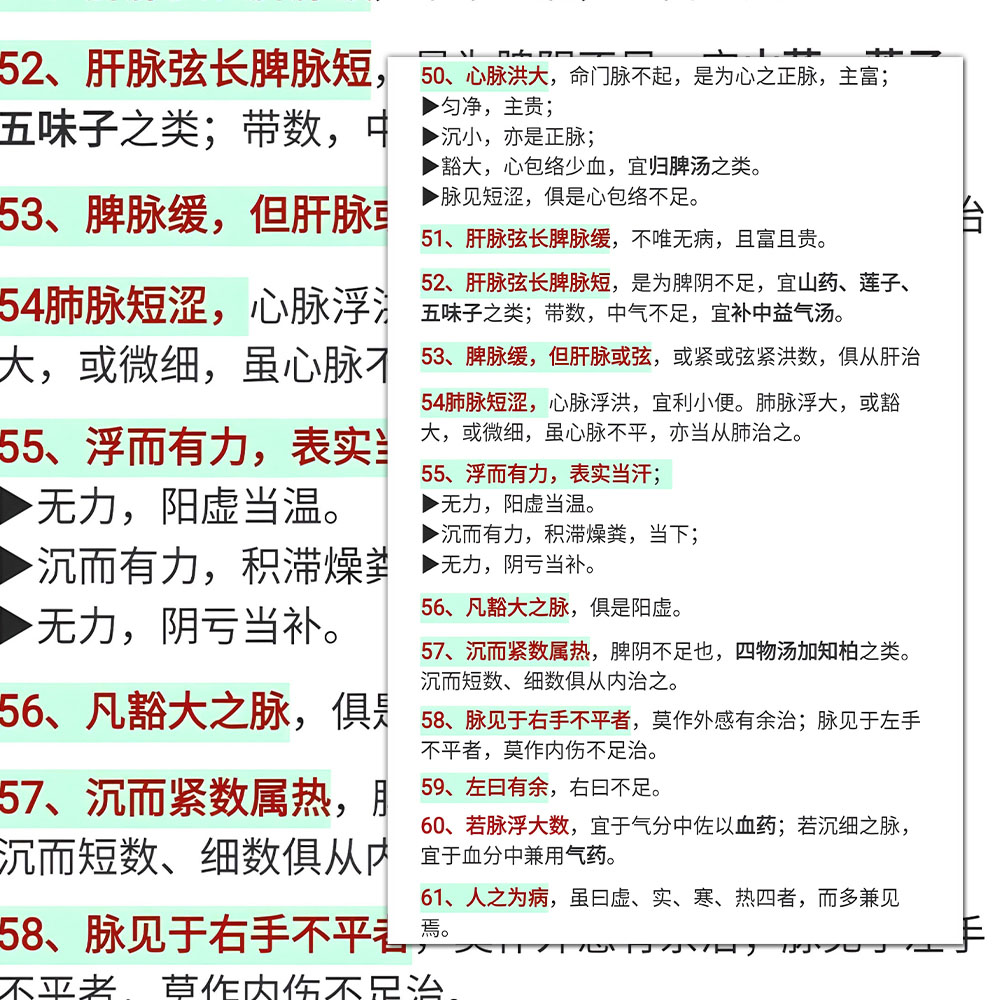 78种脉象对应的78个方剂】老中医经验总结调理偏方知识点速记贴画