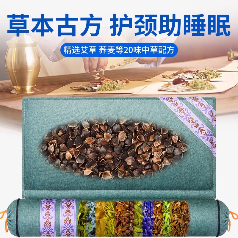 优选椎枕头助睡眠护n颈椎睡觉成人圆柱加热决明子艾草荞麦劲椎