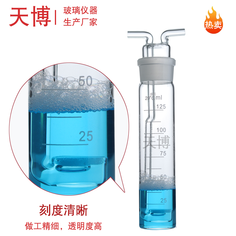 多孔玻板吸收瓶烟道烟气气体吸收瓶 氮氧化物采样瓶25 50 75 125