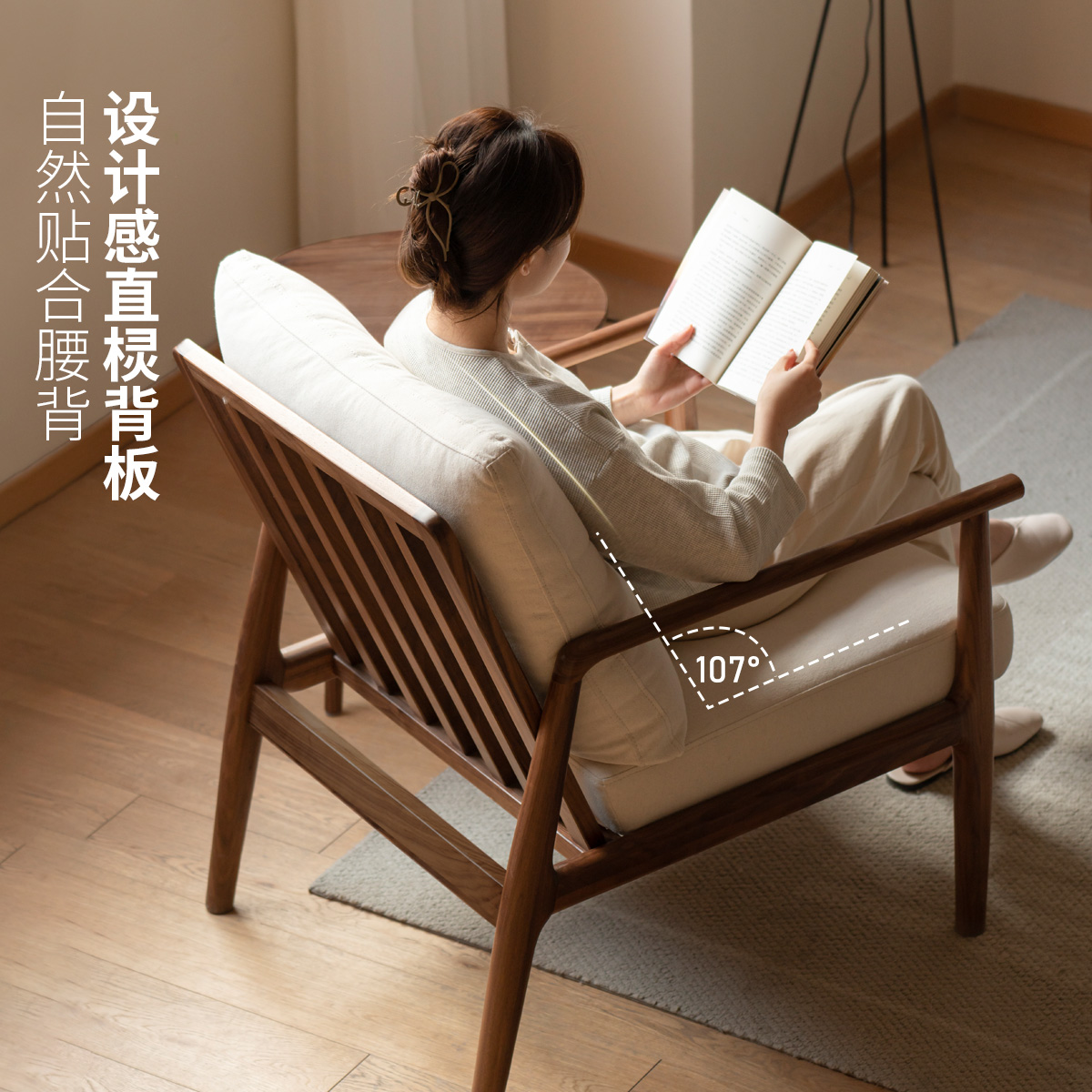 方迪黑胡桃沙发椅新中式靠背椅简约现代实木椅子客厅阳台休闲椅
