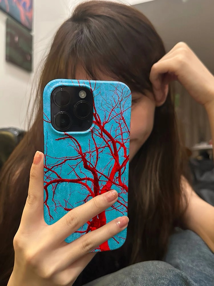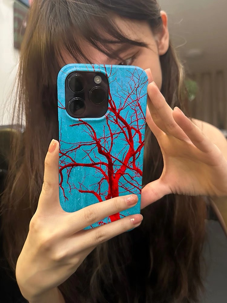 适用于苹果15pro小众不撞款手机壳ins风iPhone14promax个性15菲林14创意13小众11高级艺术感油画血色树脉新款