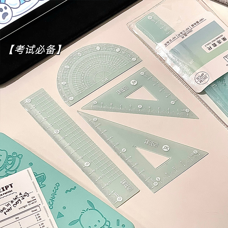 透明尺子套装ins风学生带波浪高颜值直尺三角板量角器护目文具