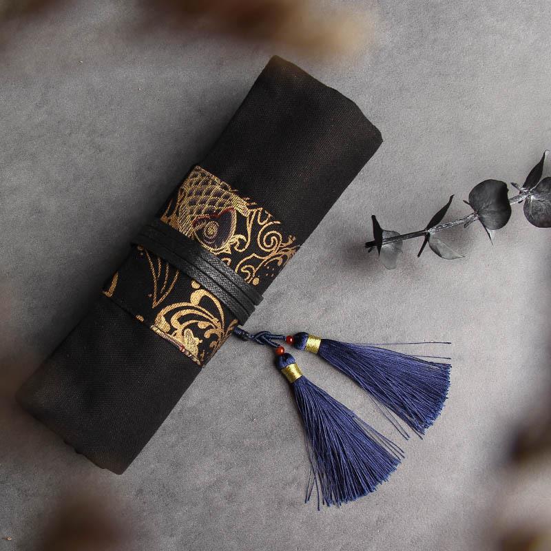 复古风笔帘大容量卷笔袋布艺笔帘钢笔袋男女学生绘画铅笔包