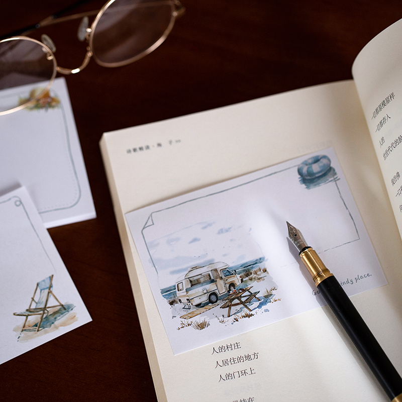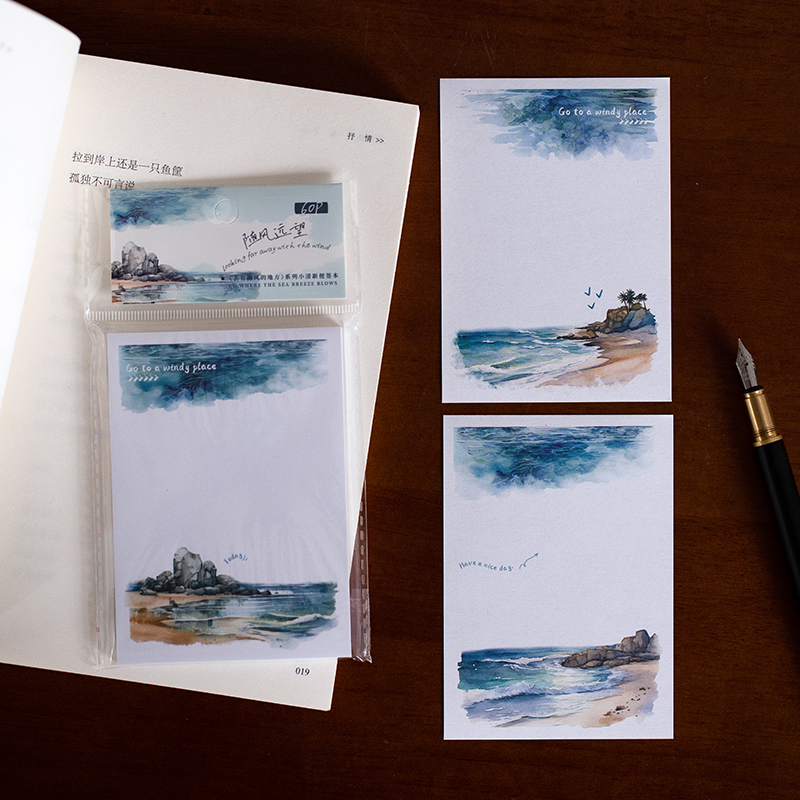 朝雨 去往有风的地方便签本ins文艺风景油画素材可撕记事小本子