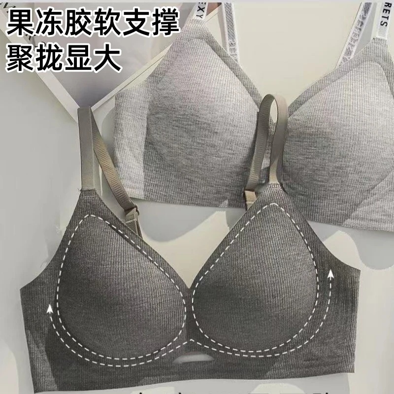 六只兔子无痕内衣女小胸聚拢收副乳果冻条软支撑舒适无钢圈文胸