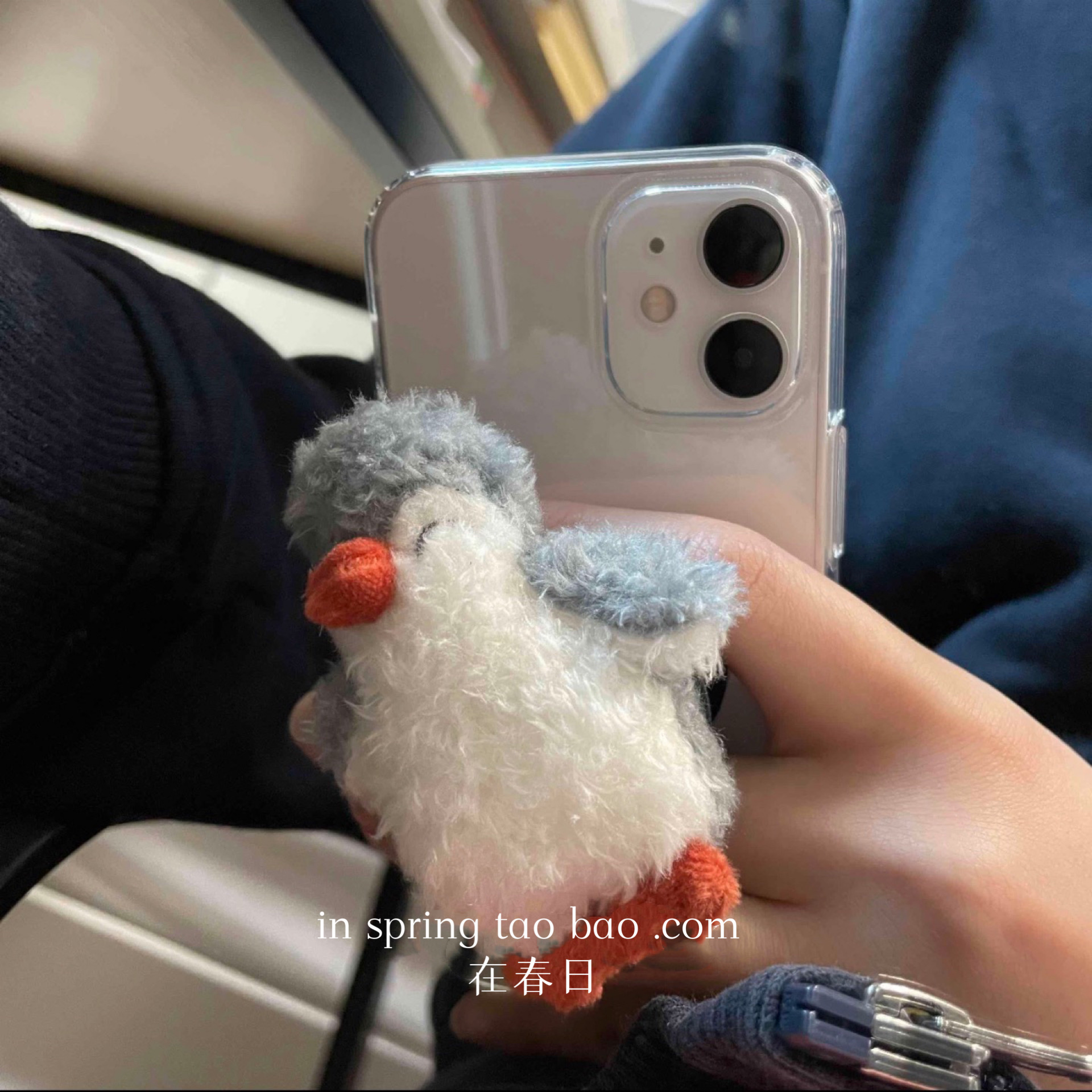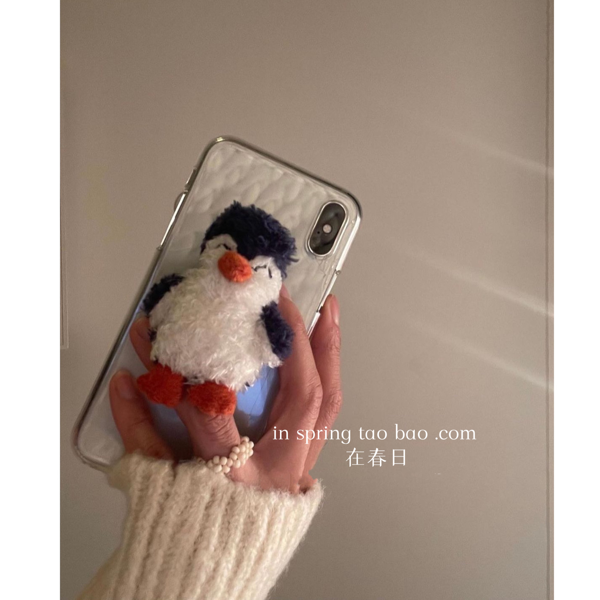 ins韩国博主fever同款毛绒小企鹅支架手机壳适用iPhone14pro/17promax苹果13/15promax/15新款16Promax女生17