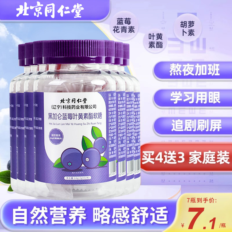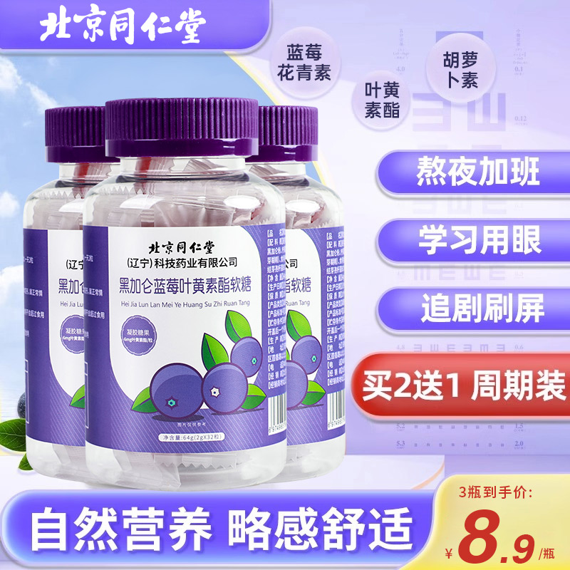 北京同仁堂蓝莓叶黄素软糖儿童青少年护眼片官方正品旗舰店成人非