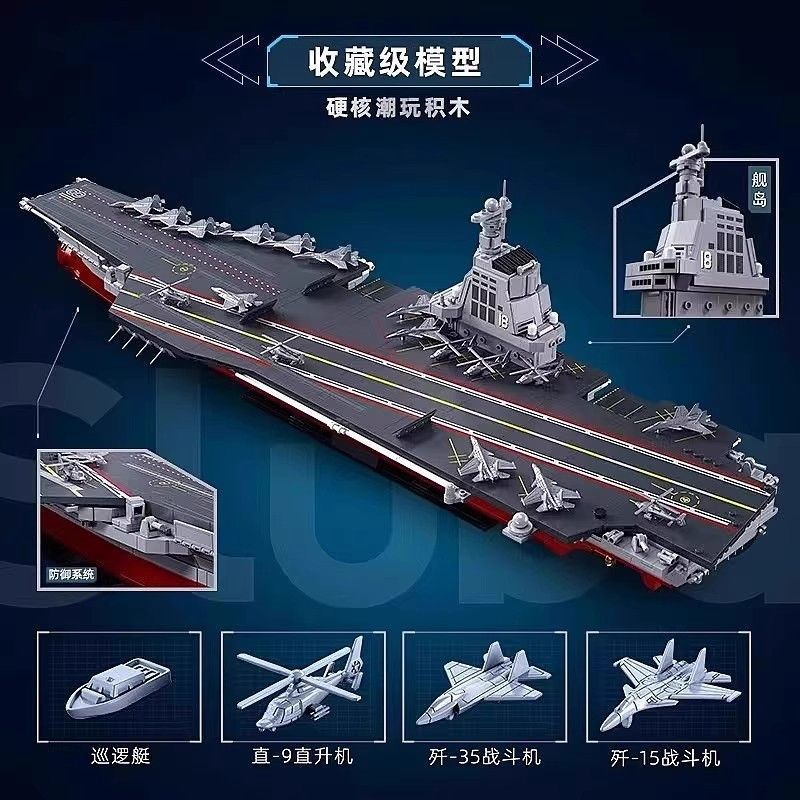 兼容乐高航空母舰积木军舰巨大型山东辽宁福建舰模型男孩拼装玩具