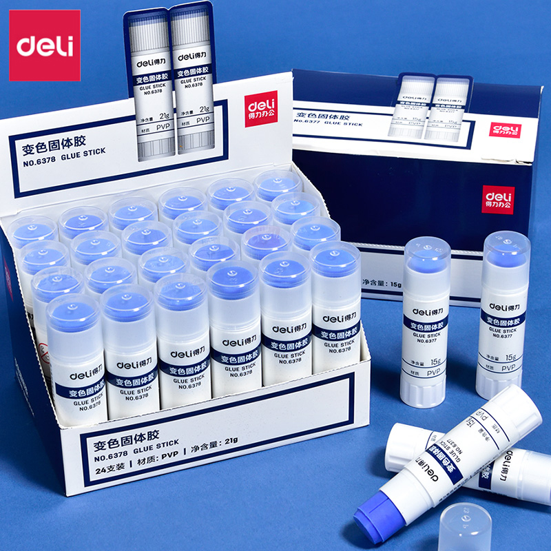 得力固体胶变色款无甲醛学生用高粘度强力胶水棒手工透明胶儿童幼儿园办公手工DIY固体胶棒高粘度固体胶