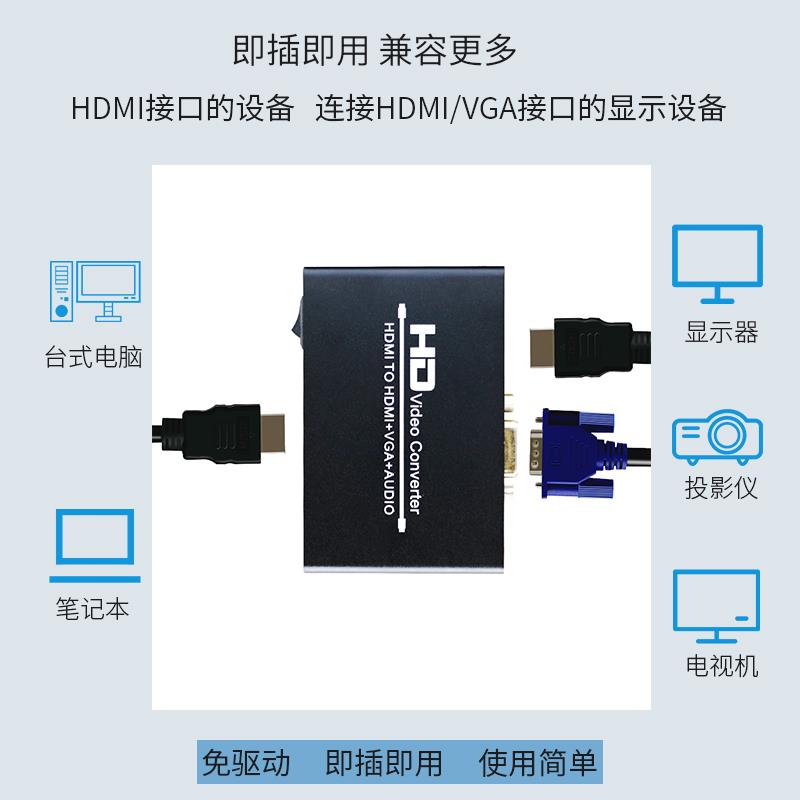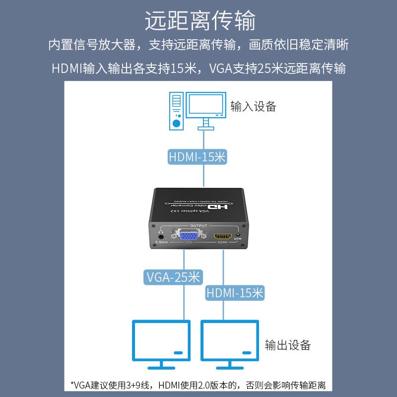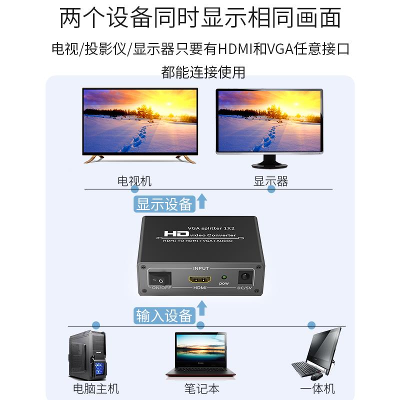 hdmi分配器一分二转HDMI加vga1进2出监控接高清电视显示器连接头