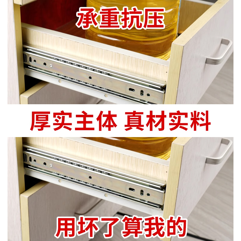加厚不锈钢抽屉轨道三节轨缓冲阻尼静音导轨二节轨橱柜键盘托滑轨