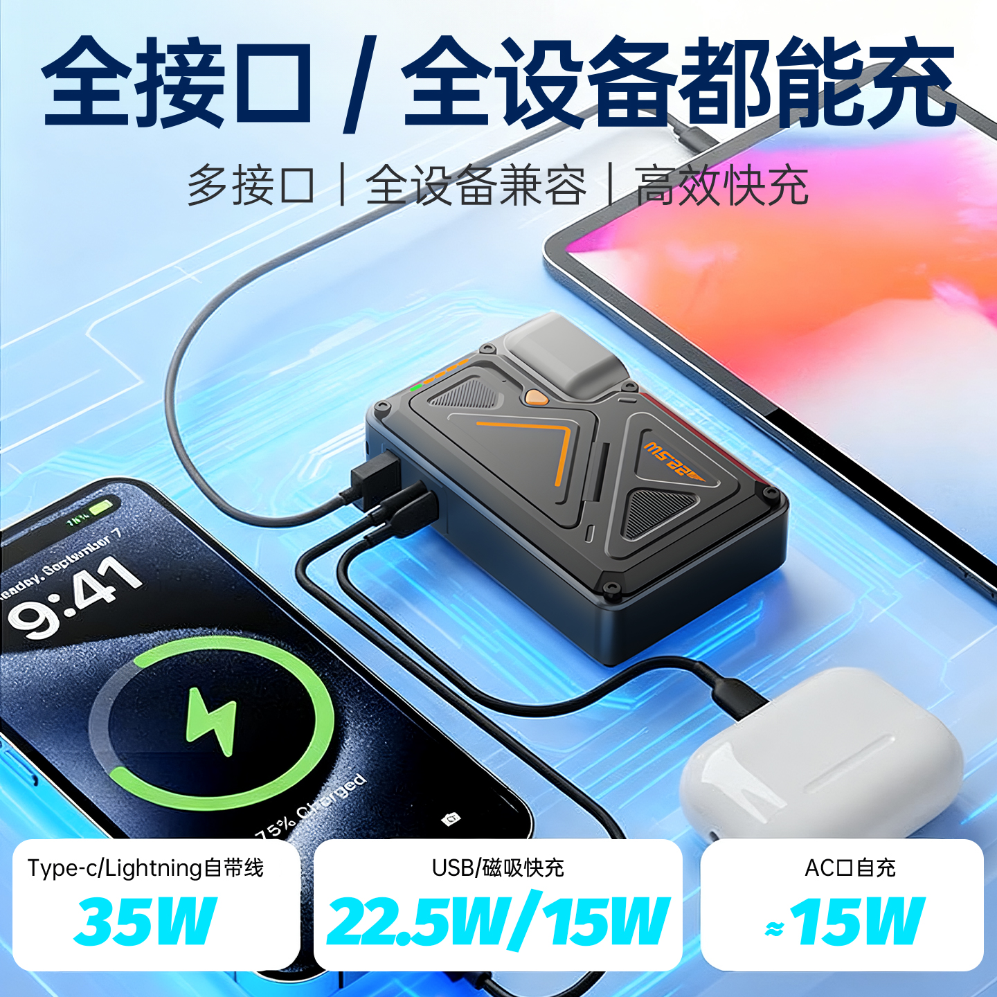 【新国标3C认证可登机】带插头CCC标识充电宝超级快充自带线磁吸五合一20000毫安便携多功能适用苹果17大容量