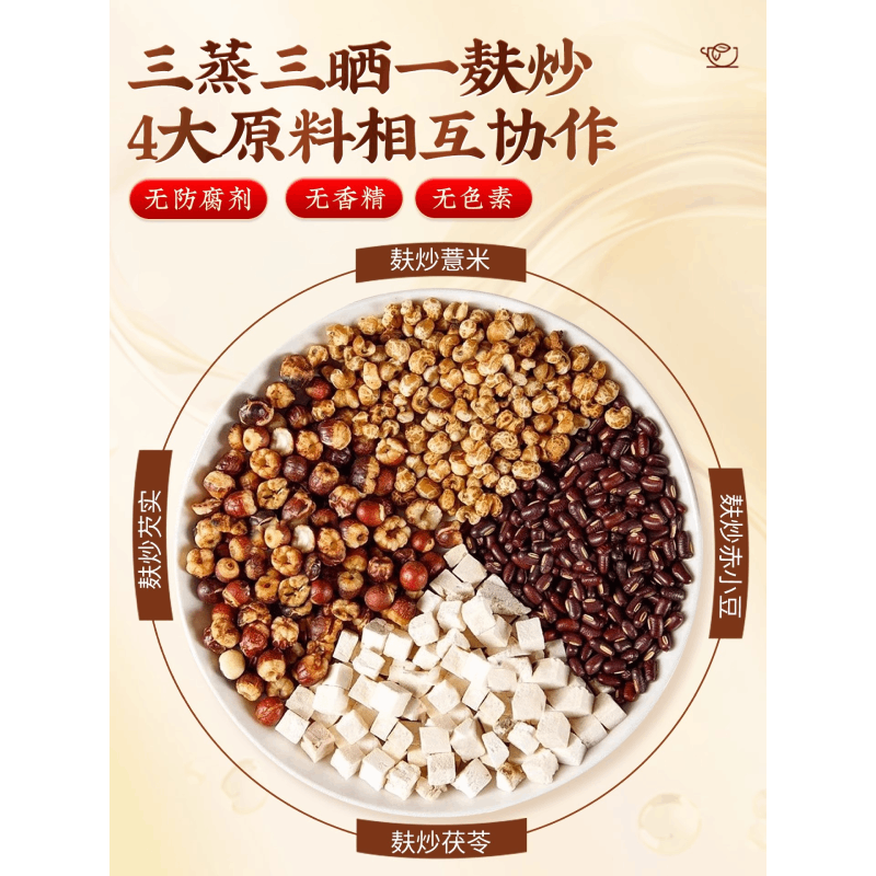 炒熟赤小豆薏仁薏米茯苓芡实祛湿气茶红豆水健脾养生三伏天茶饮