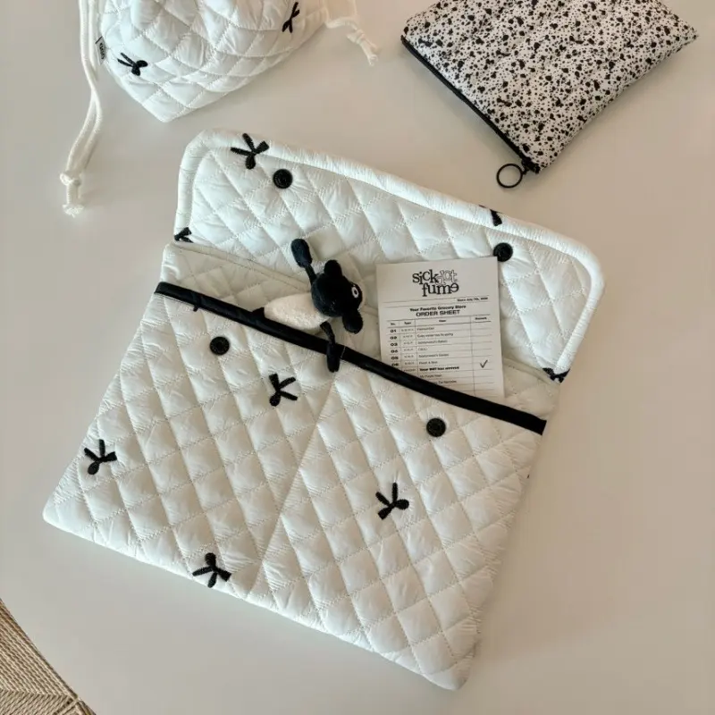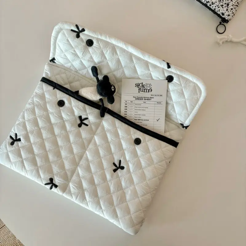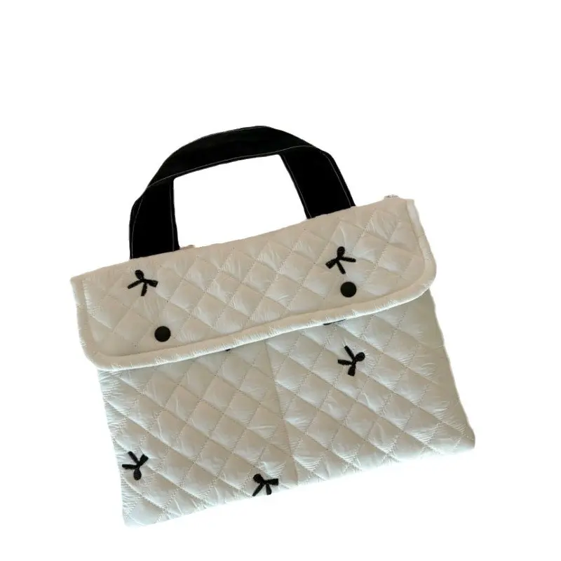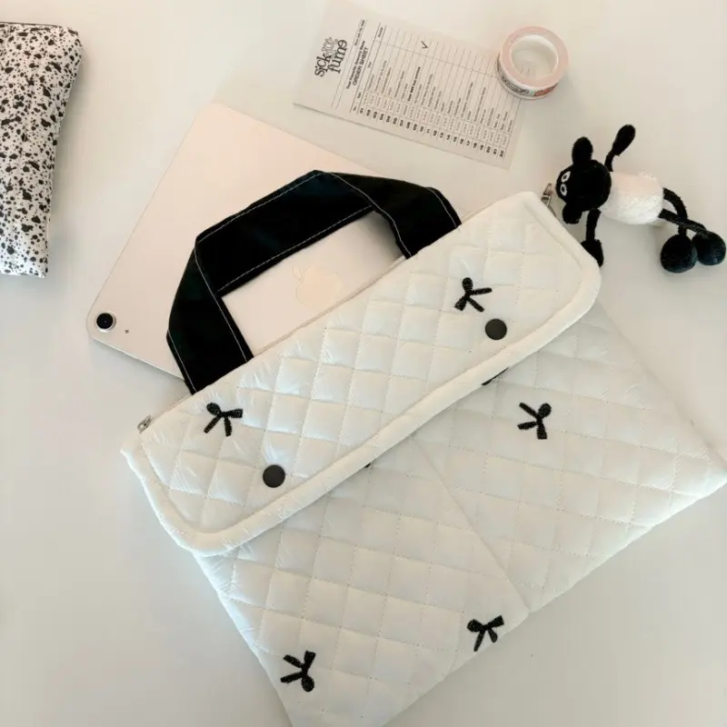 韩国ins蝴蝶结刺绣绗缝菱格夹层收纳平板13寸/14寸手提电脑包