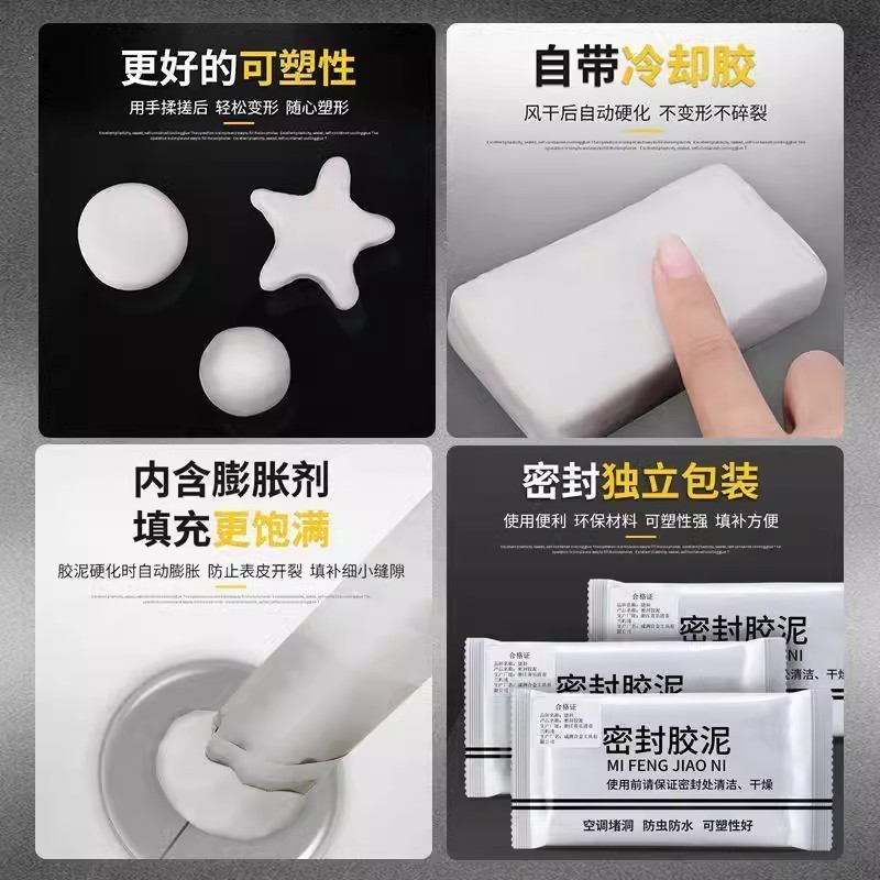 密封胶泥空调洞孔口泥封堵塞补墙填充防下水管道白色堵漏胶泥